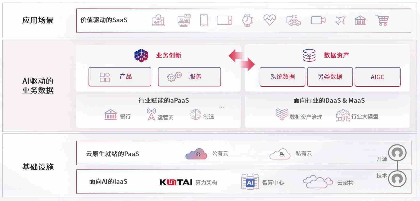 数字时代,,,围绕企业数字化转型的关键要素,,35273-十年品牌 值得信赖数码开创性的提出数云融合战略和技术体系框架,,着力在云原生、、、数字原生、、、、AI原生和信创产业上架构产品和服务能力,,,为处在不同数字化转型阶段的快消零售、、、汽车、、、金融、、、、医疗、、政企、、教育、、、、运营商等行业客户提供泛在的敏捷IT能力和融合的数据驱动能力,,构建跨界融合创新的数字业务场景和新业务模式,,,助力企业级客户建立面向未来的核心能力和竞争优势,,全面推动社会的数字化、、、、智能化转型升级。。。。